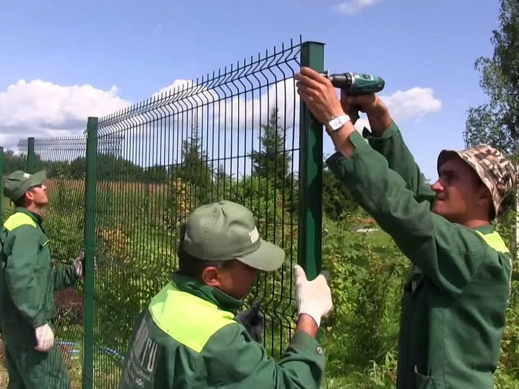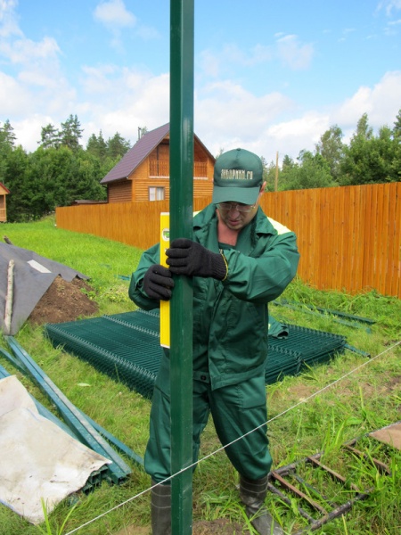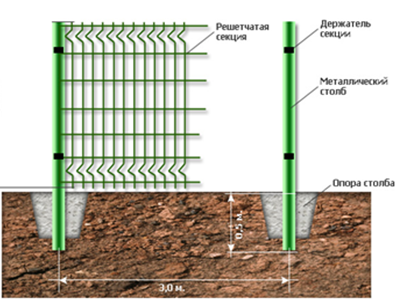 Установка 3д забора проходит с бетонированием опорных столбов в грунте в вертикальном положение.